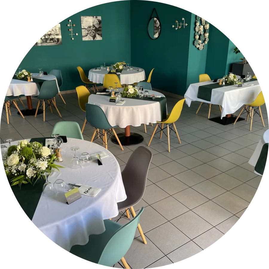 Savourez notre cuisine maison à base de produits frais dans un cadre convivial et élégant, au sein de notre restaurant. Avec notre accompagnement personnalisé, chaque événement devient une véritable expérience, où plaisir, partage et souvenirs inoubliables se conjuguent pour vos invités. Notre restaurant dispose d’un parking gratuit.